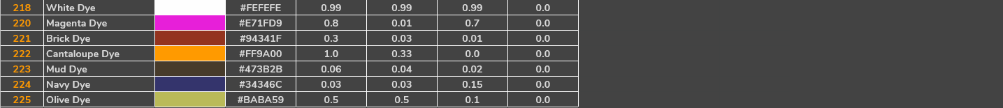 注意:ID 201-255 和 ID 0(“N”)只能通过繁殖突变获得,而 1-100 范围内的其他 ID 则取决于恐龙的野生颜色几率数组,这可能会因节日事件而有所不同。突变本身可以在任何有效的颜色 ID 范围内随机生成,范围从 ID 0 到 255。