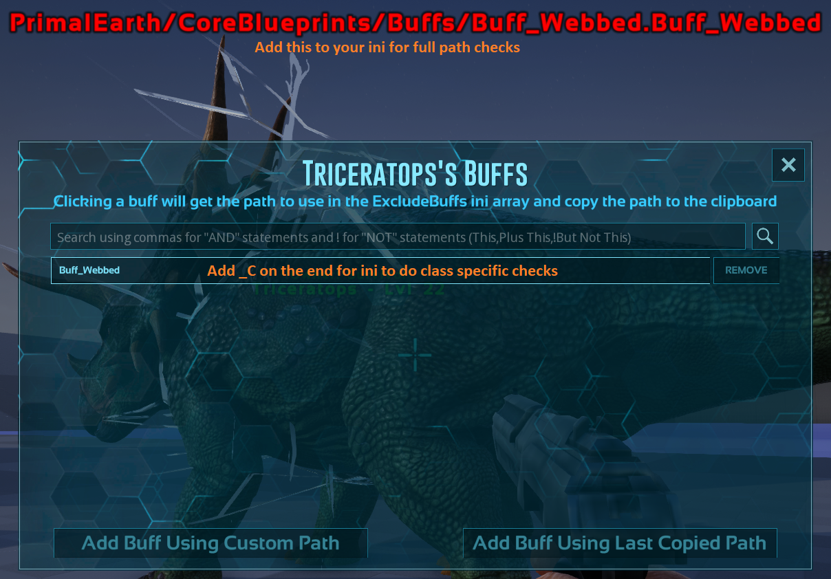 | ExcludeCorrupted=True | 防止捕获或释放“Corrupted”恐龙。 |